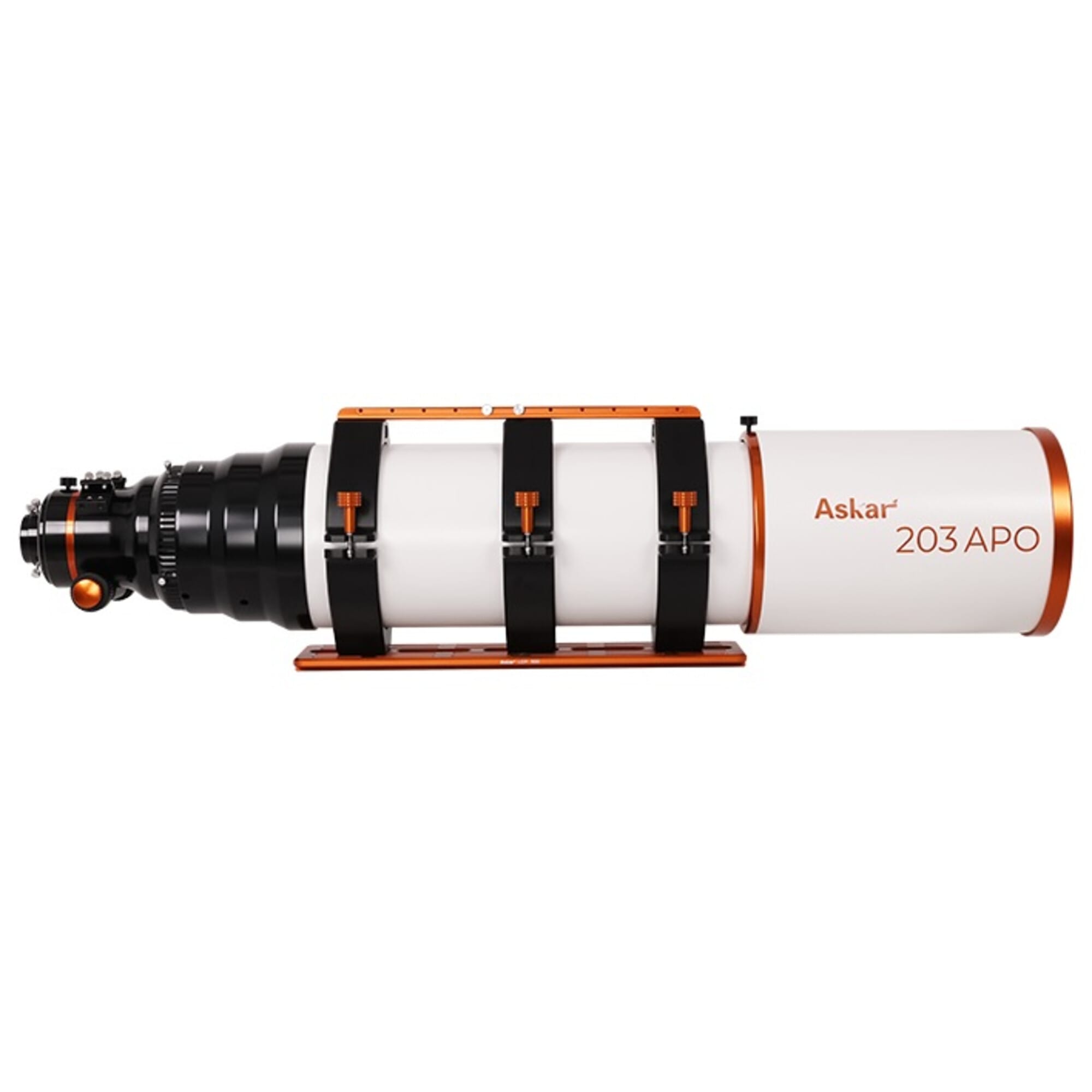Askar AP 203/1421 OTA is een van de grootste apochromatische refractors die momenteel beschikbaar zijn. Met een opening van 203 mm en een brandpuntsafstand van 1421 mm behoort dit model tot de absolute topklasse voor observatoria en high-end astrofotografie. Het triplet-objectief met luchtspleet, opgebouwd uit ED-glas (extra-low dispersion), corrigeert chromatische aberratie vrijwel volledig en levert beelden met extreem contrast, hoge resolutie en een natuurlijke kleurweergave.