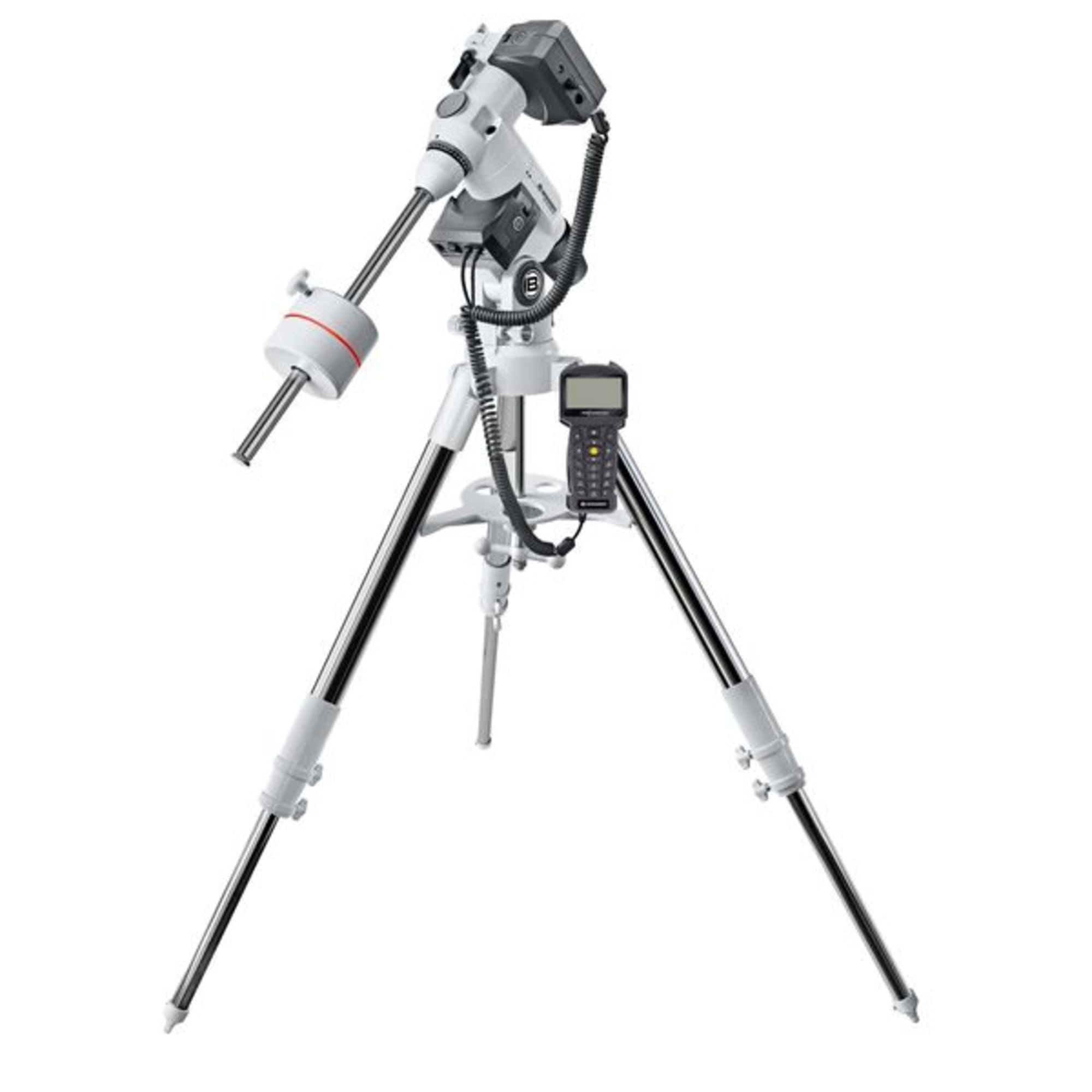 De montering is uitgevoerd met een stalen statief met verstelbare poten voor optimale stabiliteit en bevat een 4,5 kg contragewicht. Met de geïntegreerde ST-4-autoguiderpoort is de EXOS-2 volledig voorbereid op geautomatiseerde guiding tijdens fotografie.