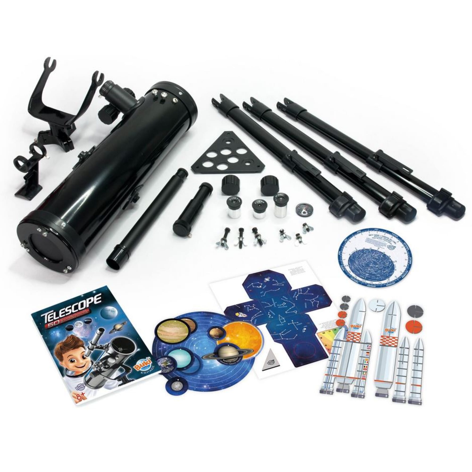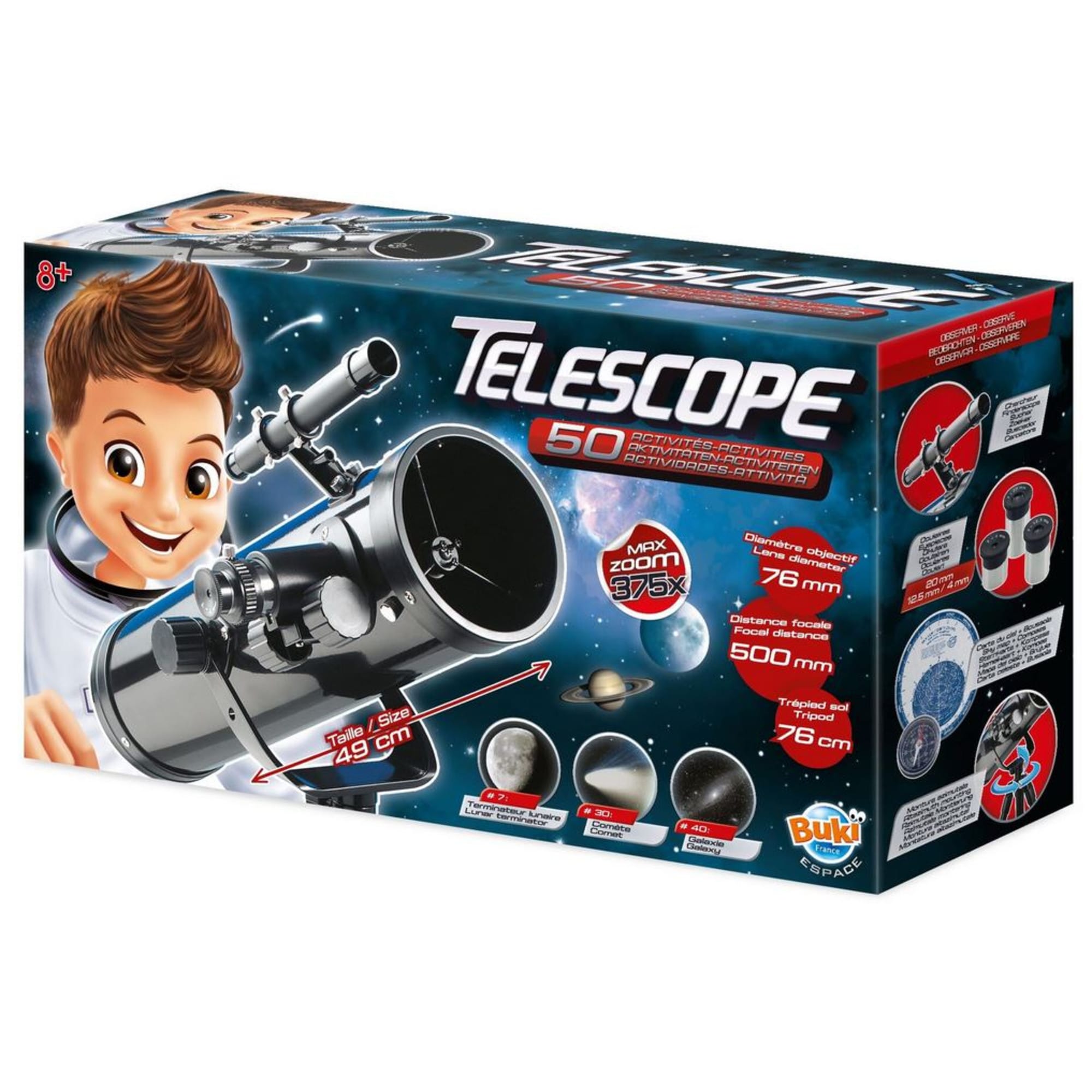 Buki Speelgoed telescoop met accessoires is een complete beginnersset waarmee kinderen de ruimte stap voor stap leren verkennen. Dankzij de duidelijke Nederlandstalige handleiding met vijftig boeiende activiteiten leren ze niet alleen kijken, maar ook begrijpen wat ze zien.