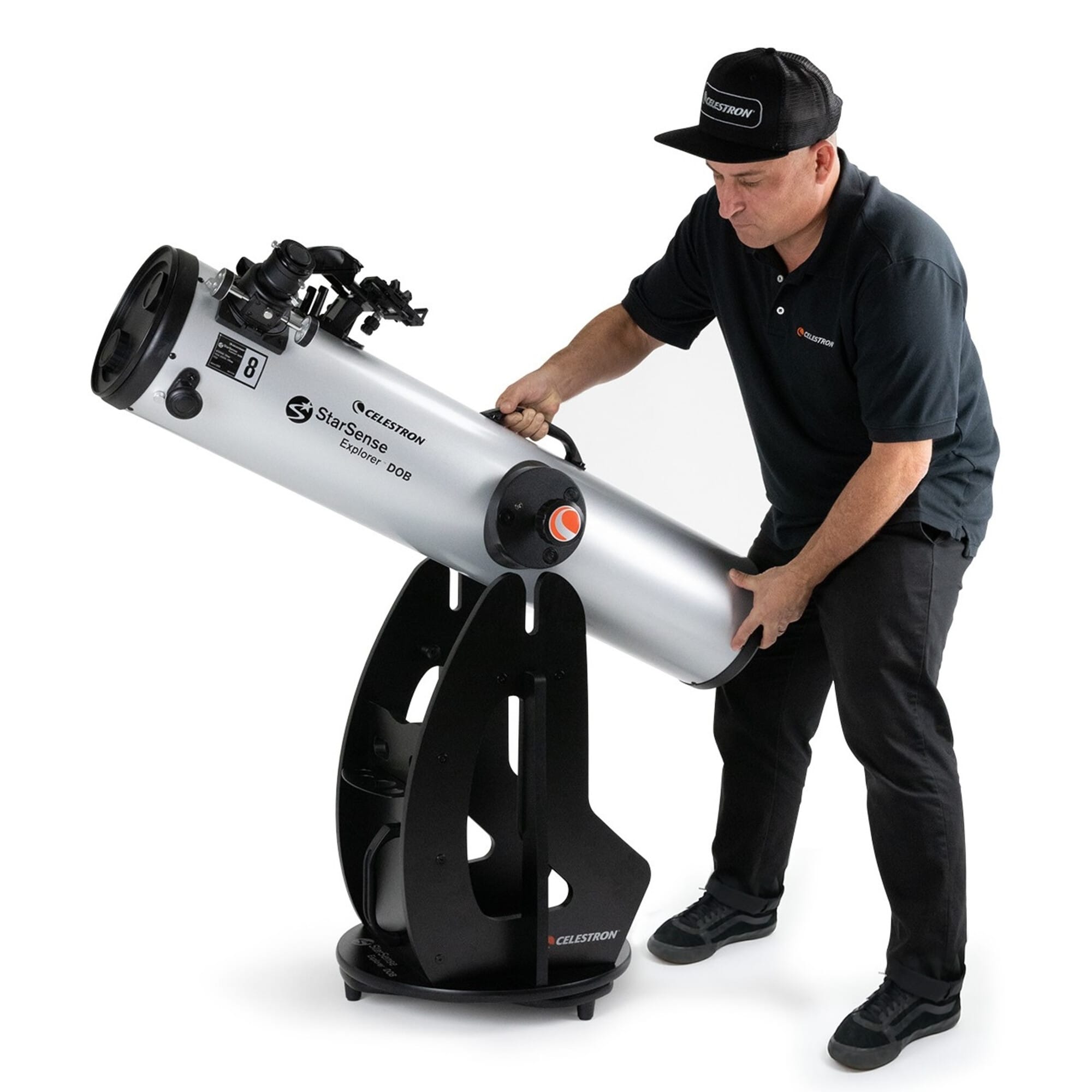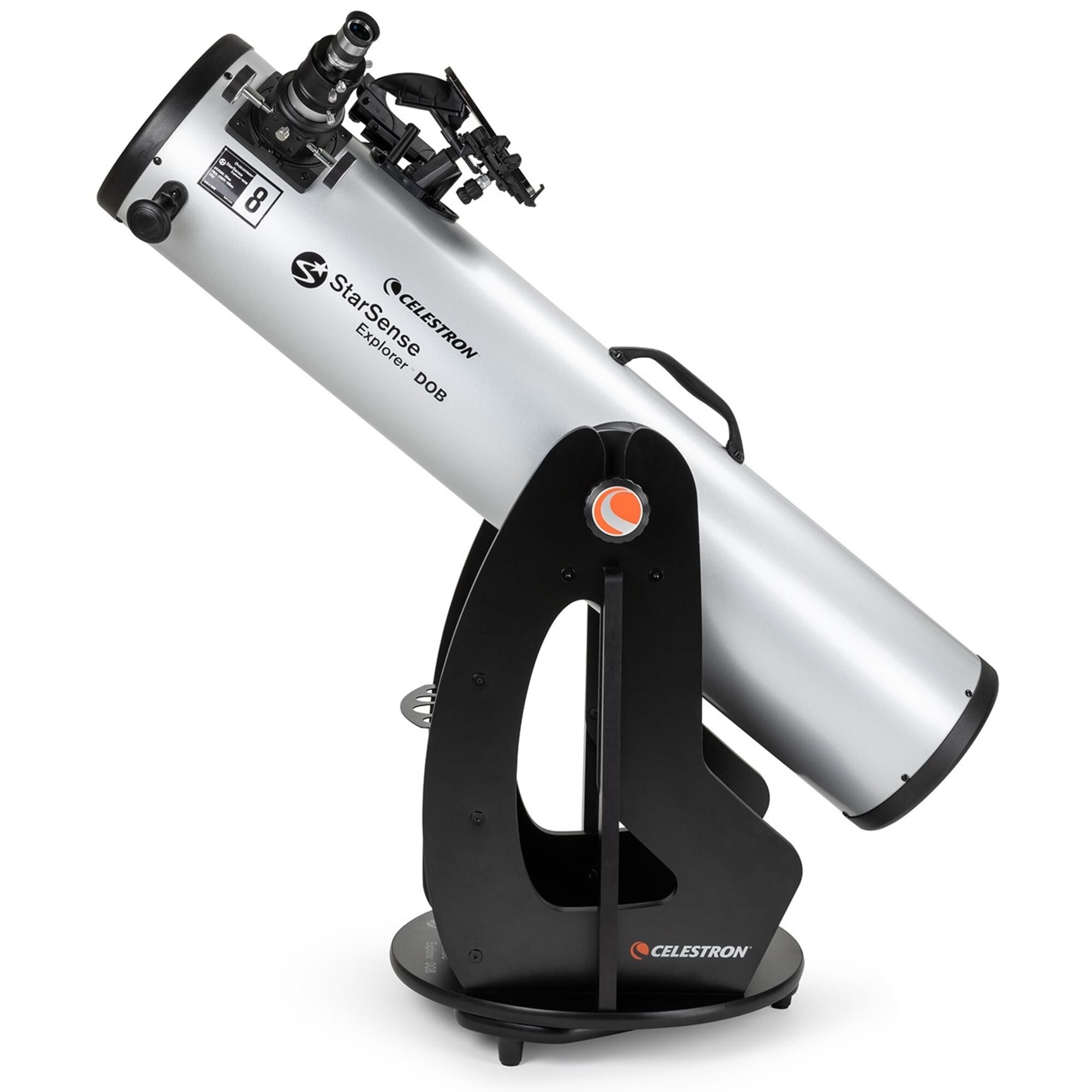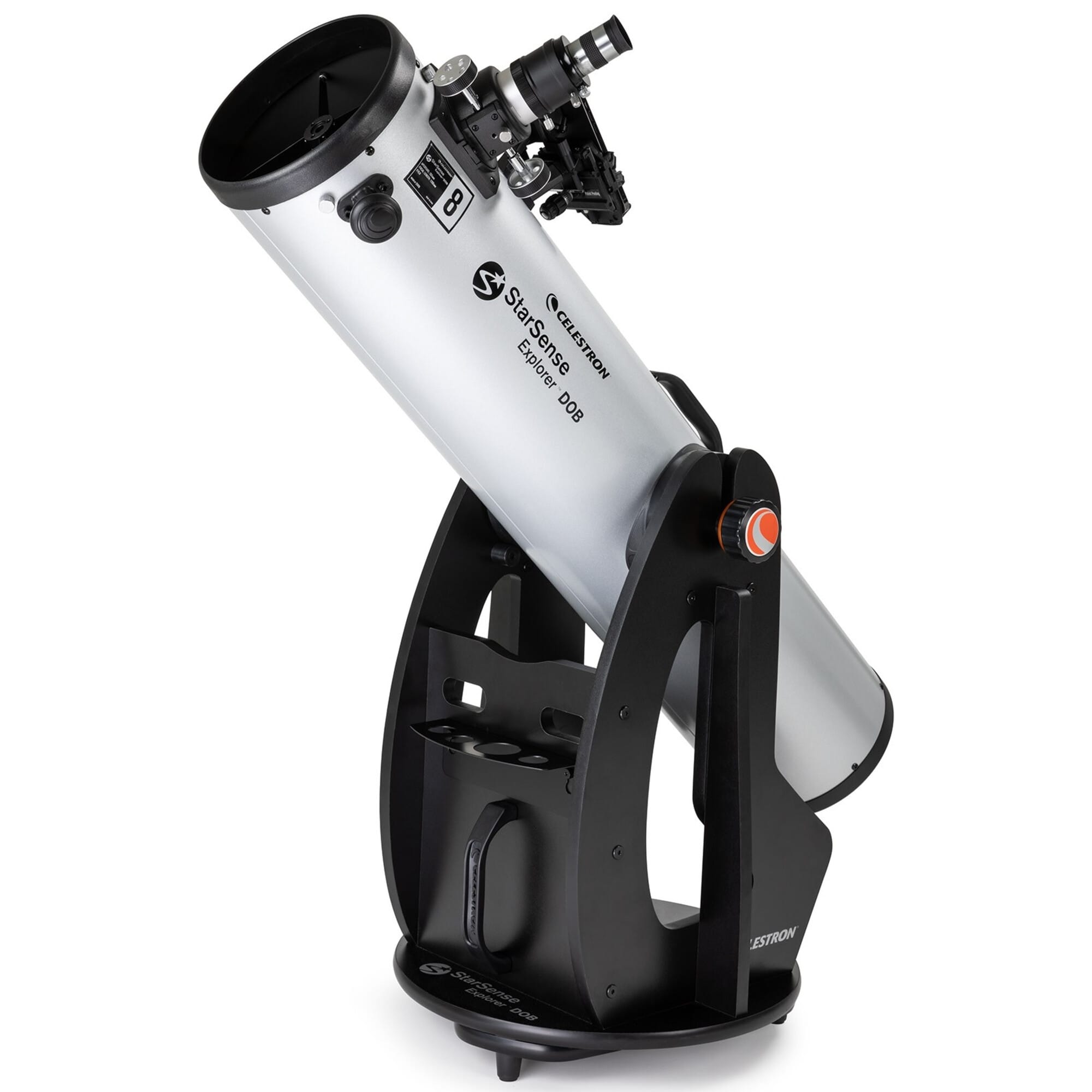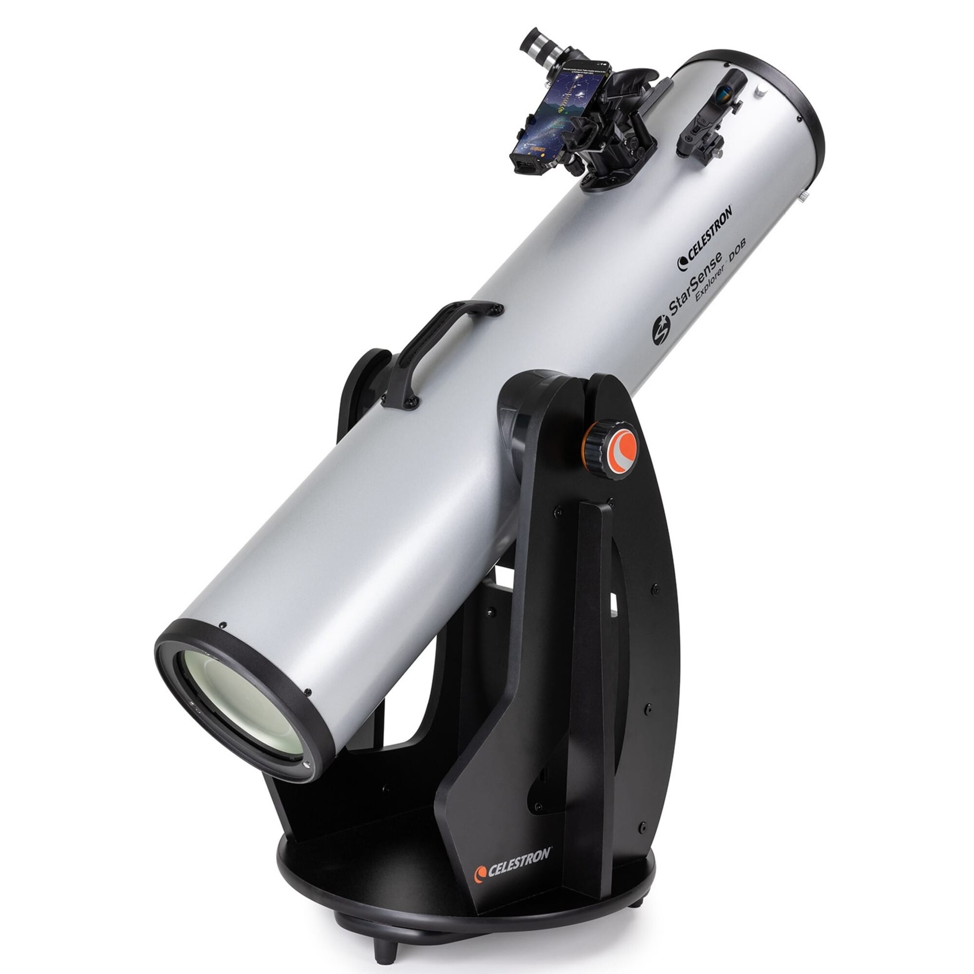 Celestron StarSense Explorer Dobson 203 mm wordt geleverd met 203 mm parabolische spiegel, Dobson-montering, StarSense Explorer smartphonehouder en oculairs – een krachtige, slimme keuze voor visuele observatie.