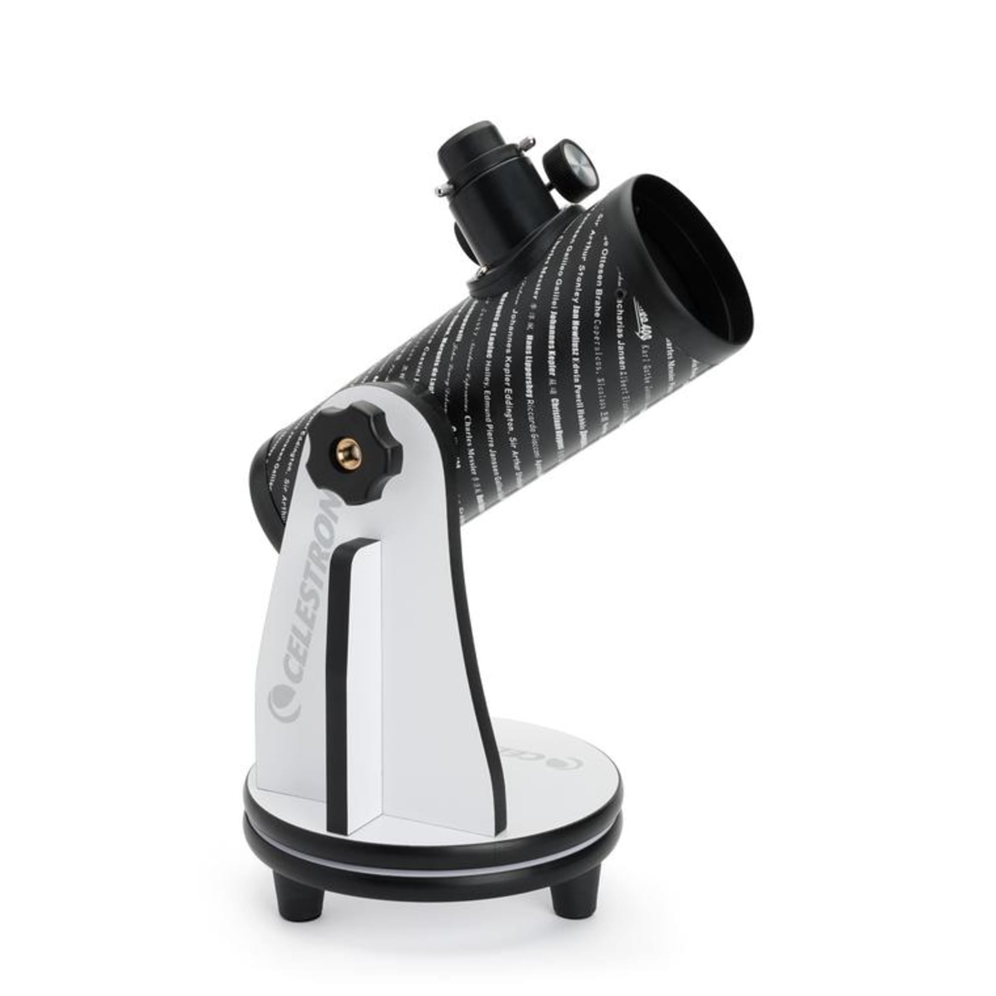 De FirstScope staat op een robuuste tafeldobson-basis, waarmee je de buis soepel horizontaal en verticaal beweegt. Richt hem intuïtief op de maan of een ster en stel scherp met de 1,25″ rack & pinion-focuser. Dankzij het lichte ontwerp (ongeveer 2 kg) is hij moeiteloos te verplaatsen en perfect geschikt voor balkon, tuin of camping.