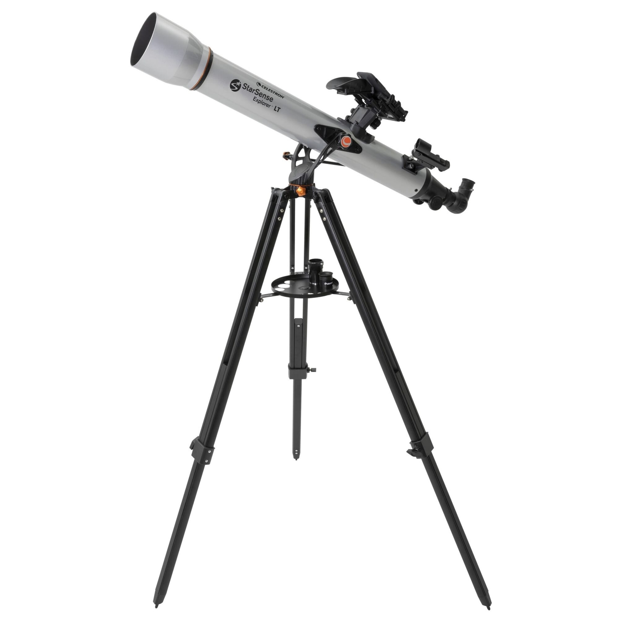 Celestron StarSense Explorer LT 80 AZ wordt geleverd met twee oculairs, 2x Barlow-lens, red dot finder, zenitprisma en verstelbaar statief.