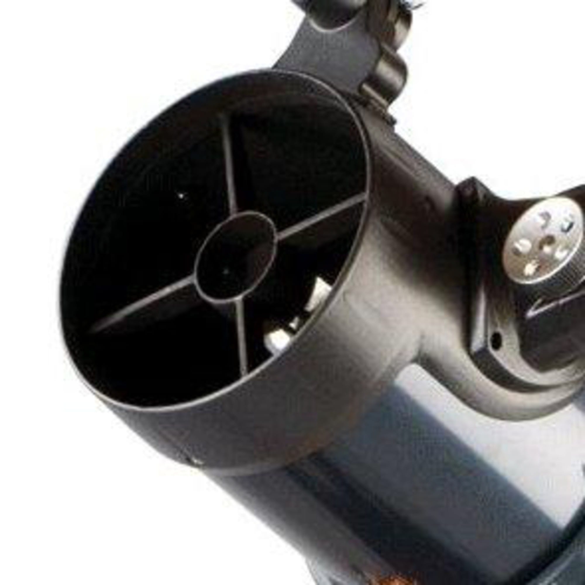 De telescoop is voorzien van een LED-zoeker die helpt om snel objecten terug te vinden. Via de 1,25″ focuser gebruik je verschillende oculairs om de juiste vergroting te kiezen. De optische buis is gemonteerd op de CG-2 parallactische montering, waarmee je objecten in de hemel nauwkeurig kunt volgen. Flexibele assen en instelschaaltjes zorgen voor precieze handmatige bewegingen. Voor extra comfort kan later een volgmotor worden toegevoegd.