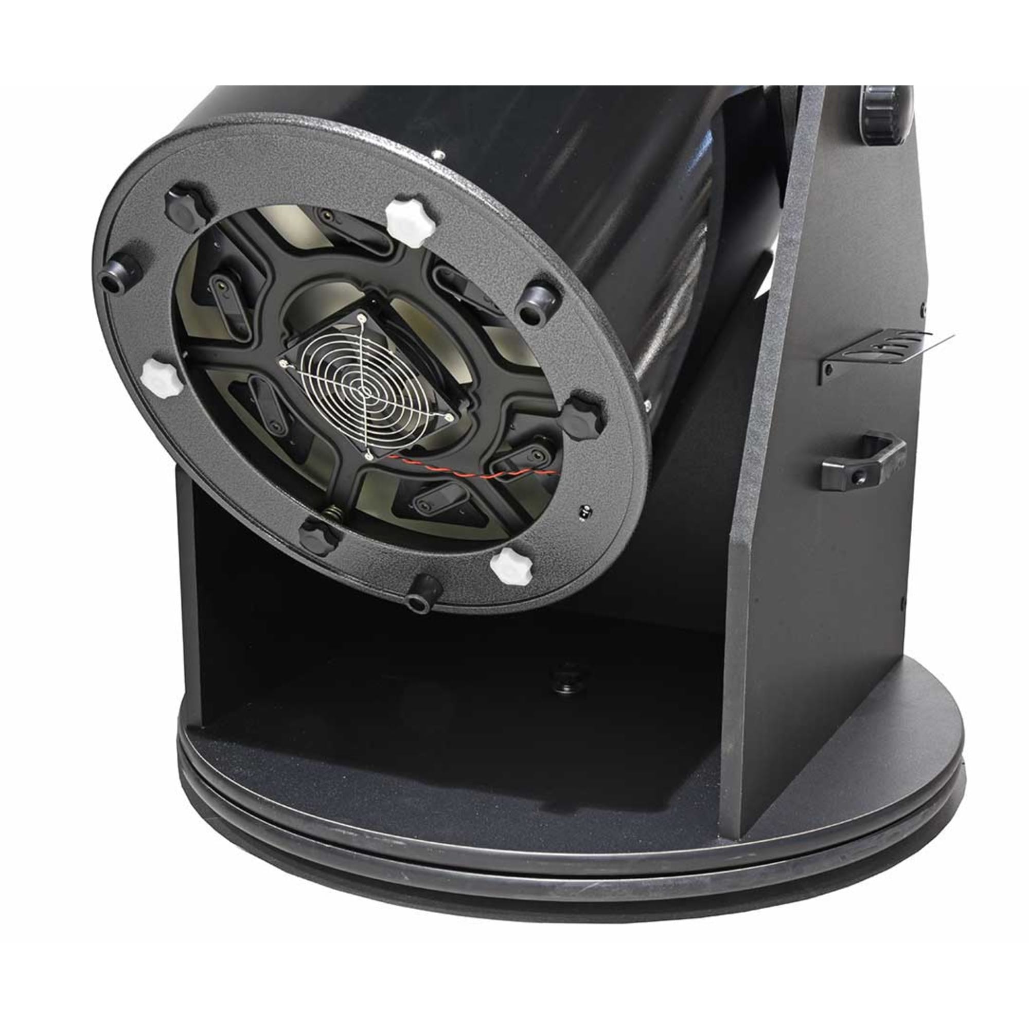 De parabolische hoofdspiegel is voorzien van een hoogwaardige quartzcoating met 94% reflectie en wordt ondersteund door een ventilator die snelle afkoeling garandeert. De Crayford-focuser met 1:10 microverstelling maakt nauwkeurig scherpstellen eenvoudig, ook bij de hoge vergrotingen die deze telescoop mogelijk maakt. Dankzij de instelbare wrijvingsrem op de hoogte-as blijft de buis perfect in balans, zelfs met zware oculairs of accessoires.