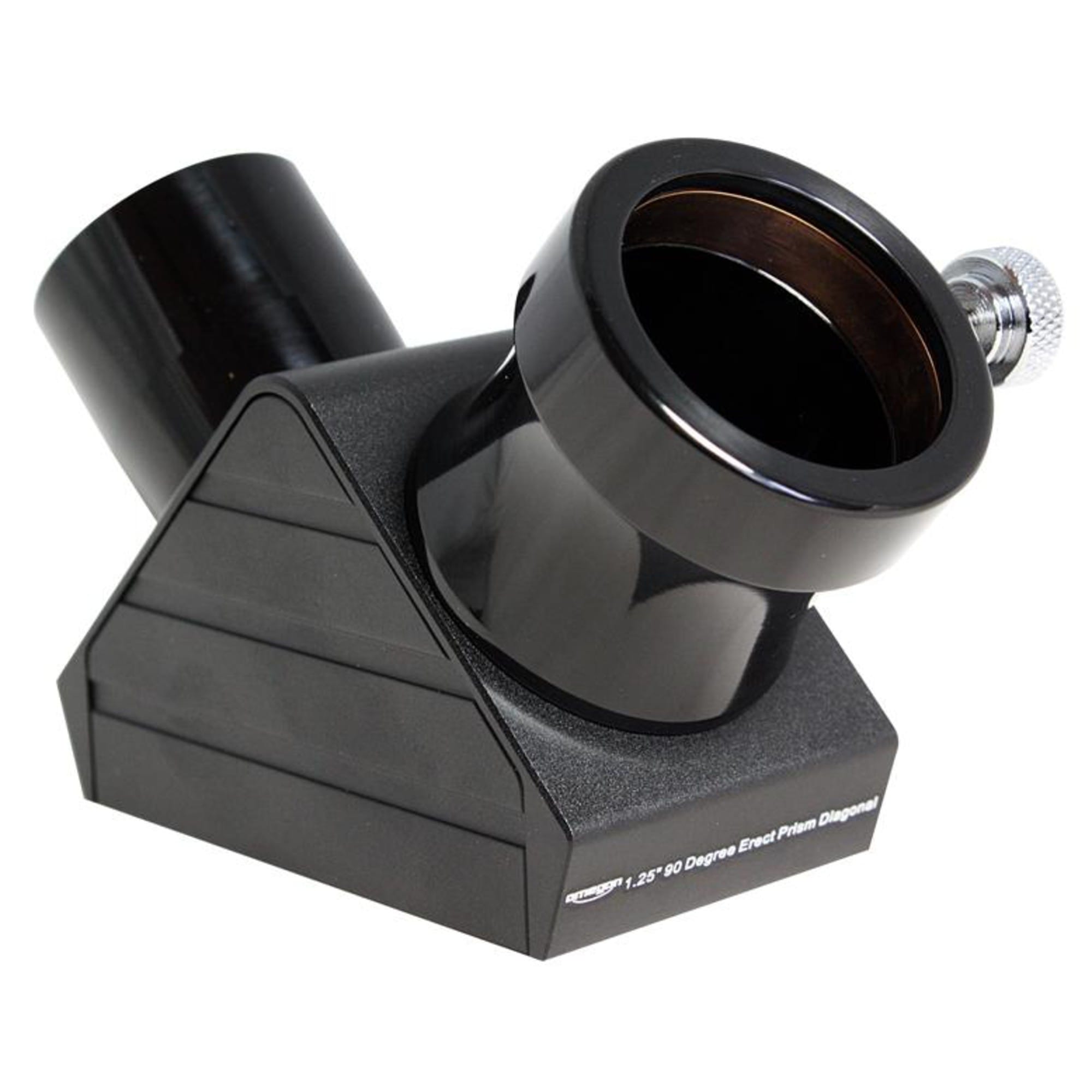 De mechanische afwerking is solide en praktisch. Met de ringklem klem je je oculairs veilig vast zonder krassen, en dankzij de geïntegreerde 1,25” filterschroefdraad gebruik je eenvoudig maan- of kleurfilters. Het prisma is compatibel met alle gangbare refractors, Schmidt-Cassegrains en Maksutovs met een 1,25” focuser.