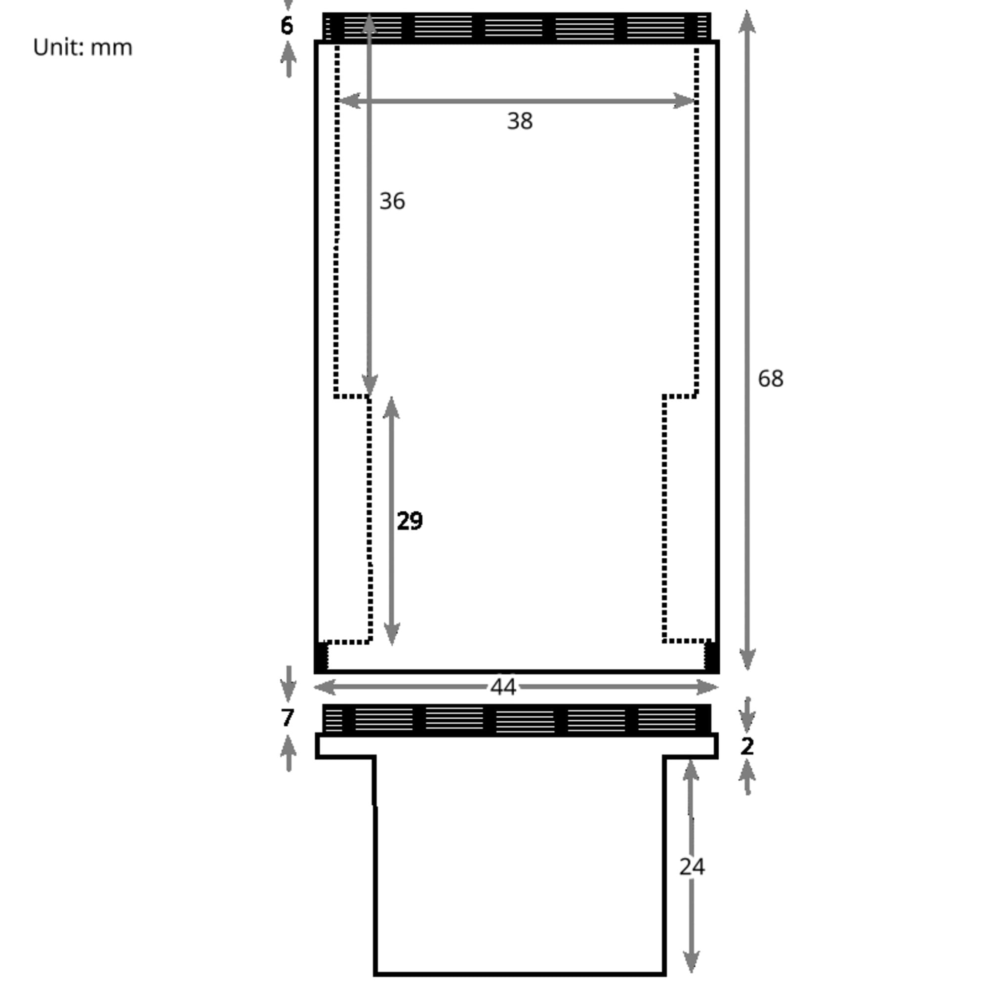 - Afmetingen (LxBxH): 44,5 x 44,5 x 93 mm