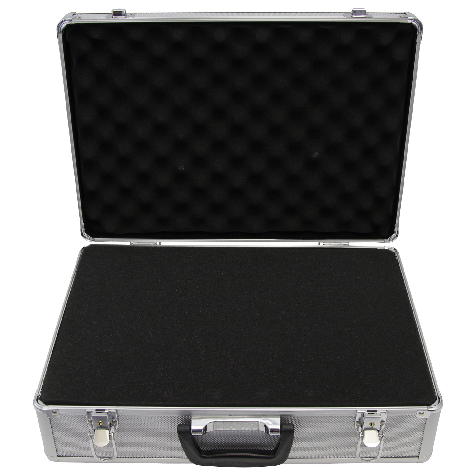 De buitenkant is gemaakt van stevig aluminium met verstevigde hoeken, waardoor je kostbare optiek en toebehoren optimaal beschermd blijven tegen schokken en krassen. Binnenin vind je blokvormig schuimrubber met een raster van 1 × 1 cm. Hiermee pas je de indeling eenvoudig zelf aan en creëer je vakken op maat voor elk accessoire. Zo blijft alles stevig op zijn plek, ook tijdens transport.