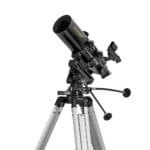 De meegeleverde 90° zenitspiegel geeft een rechtopstaand beeld, zodat je de telescoop ook kunt gebruiken voor natuurobservatie, vogels of verre landschappen. Dat maakt dit model niet alleen een beginnerskijker, maar ook een praktische reisgenoot.