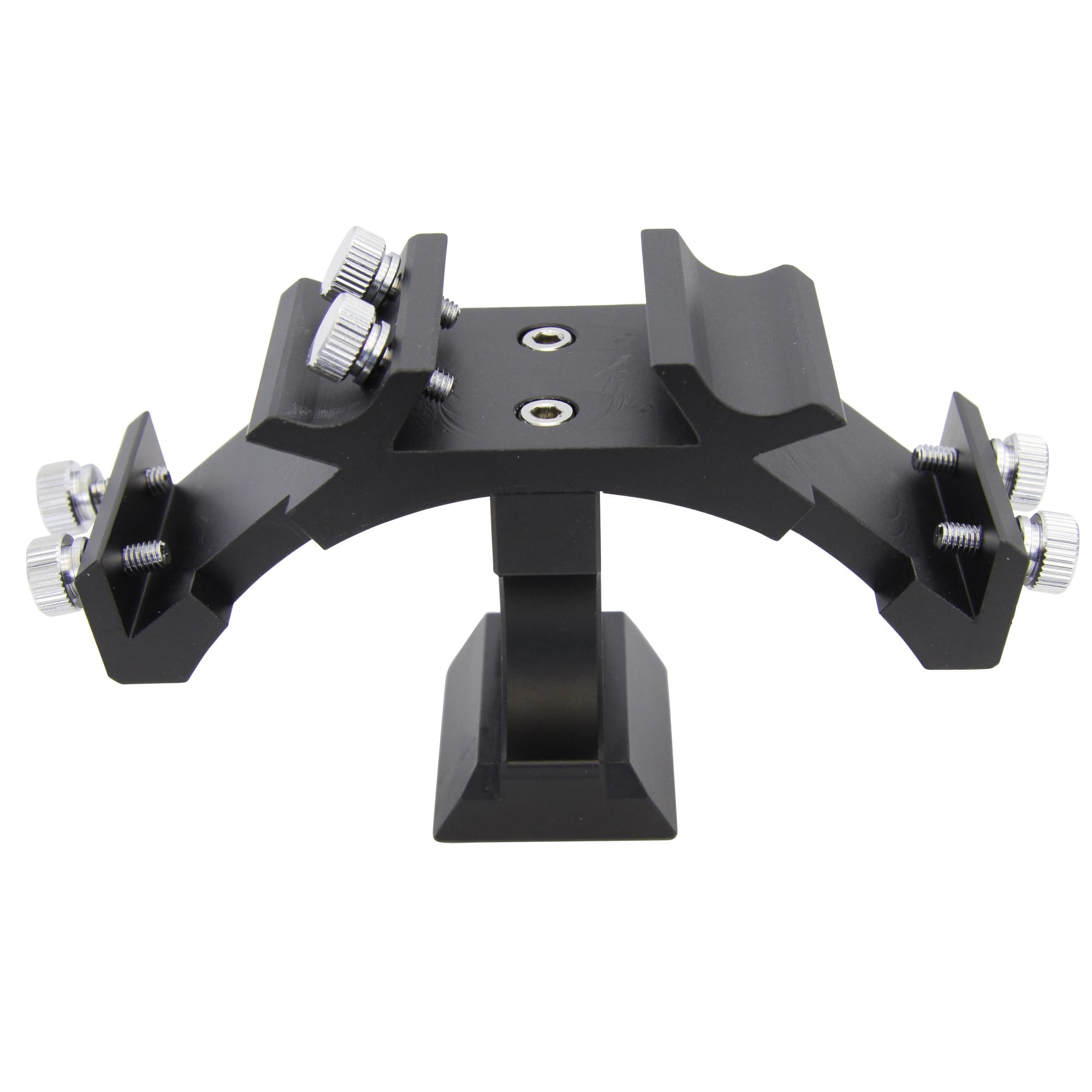 De houder past direct in een standaard Vixen-/Synta-zoekerschoen, zodat boren of extra montagepunten niet nodig zijn. Elke zoeker wordt stevig vastgeklemd met twee schroeven, zodat alles stabiel blijft staan tijdens het gebruik.