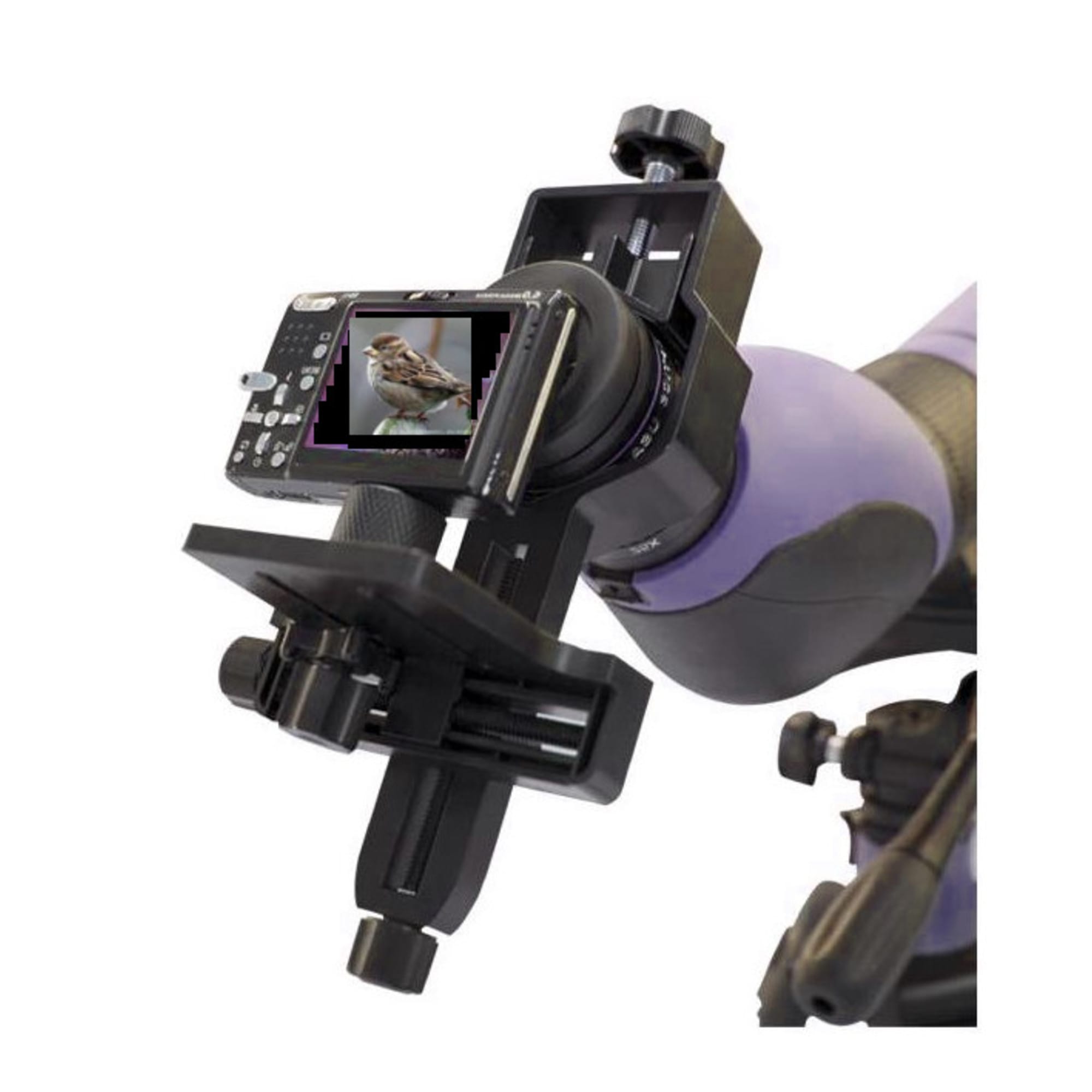 Omegon Universele Digitale Camera Adapter maakt het mogelijk om vrijwel elke digitale compactcamera of kleinbeeldcamera direct te koppelen aan een telescoop, spotting scope of ander optisch instrument met een 1,25″ oculair. Zo maak je foto’s van de maan, planeten of natuurwaarnemingen zonder dat je beperkt wordt door de draadverbinding van je camerabehuizing.