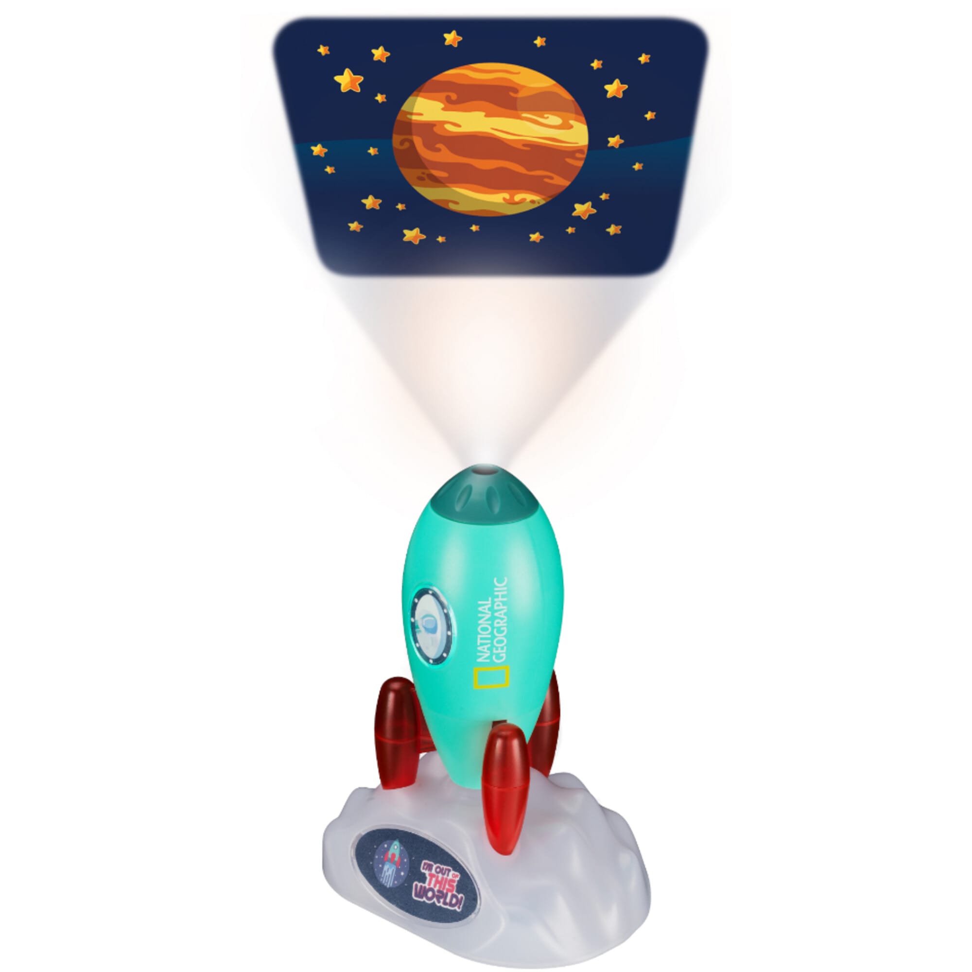 Wanneer het avontuur voorbij is, verandert de projector in een rustgevend nachtlampje. Plaats de raketvormige projector op de meegeleverde wolkenstandaard en activeer het warme licht – ideaal om in slaap te vallen na een dag vol ontdekkingen. En als het ’s ochtends nog donker is, kun je hem ook als zaklamp gebruiken. Een druk op de knop en de kamer is verlicht voor het volgende avontuur.