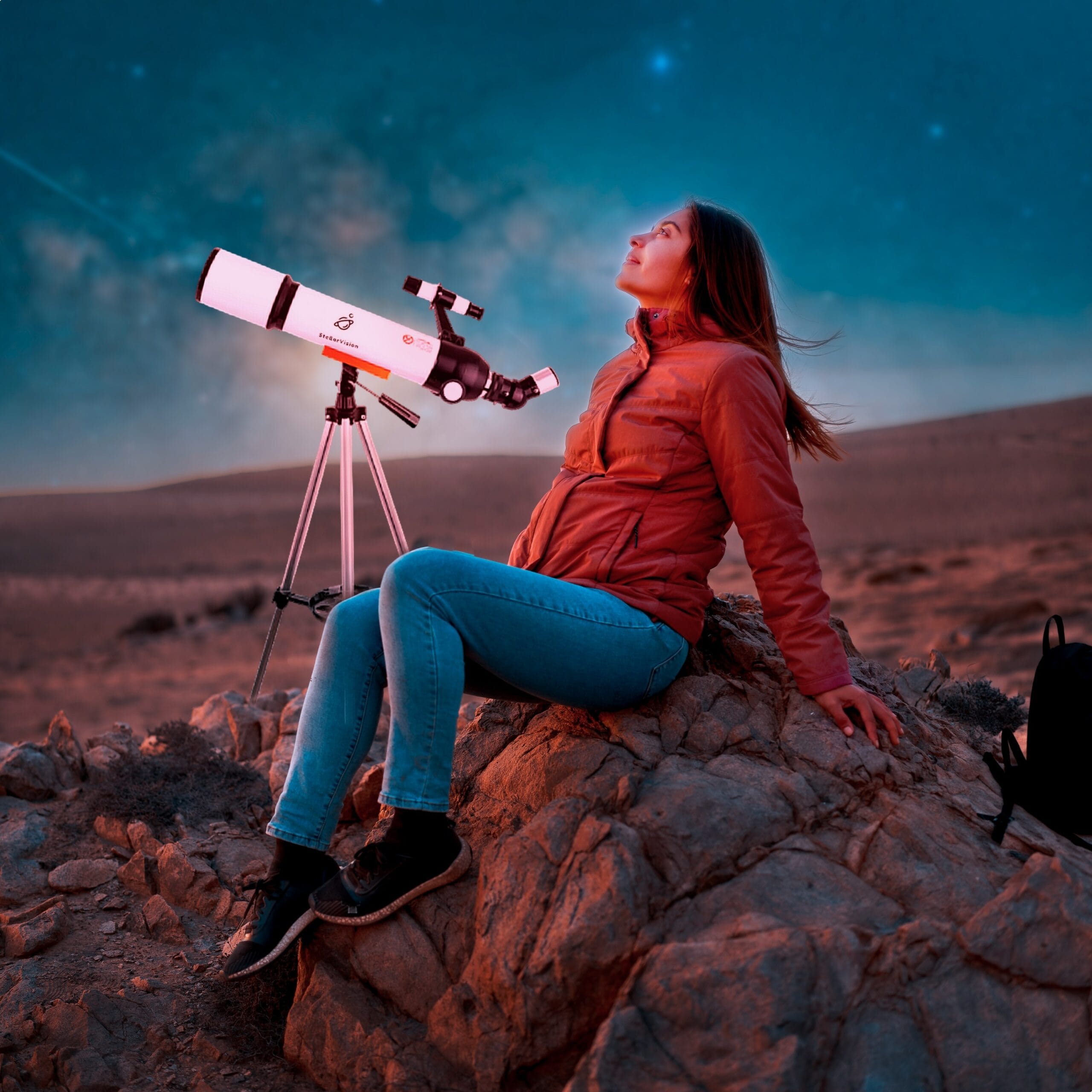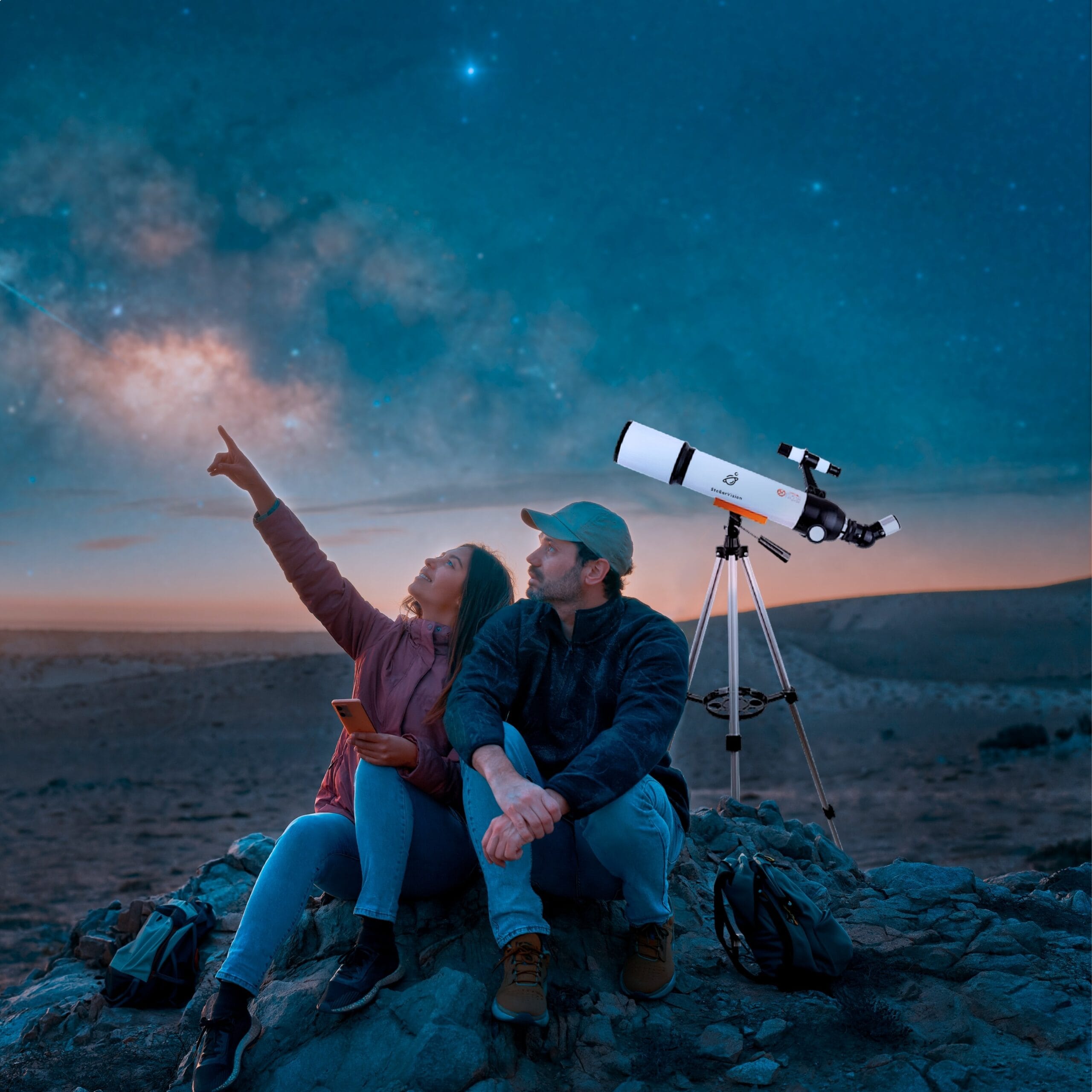 Dankzij zijn draagbare ontwerp en complete accessoires is de StellarVision ideaal voor avontuurlijke nachten in de achtertuin. Deze telescoop is licht, gemakkelijk op te zetten, en uitgerust met alles wat je nodig hebt voor een magische sterrenkijkervaring.