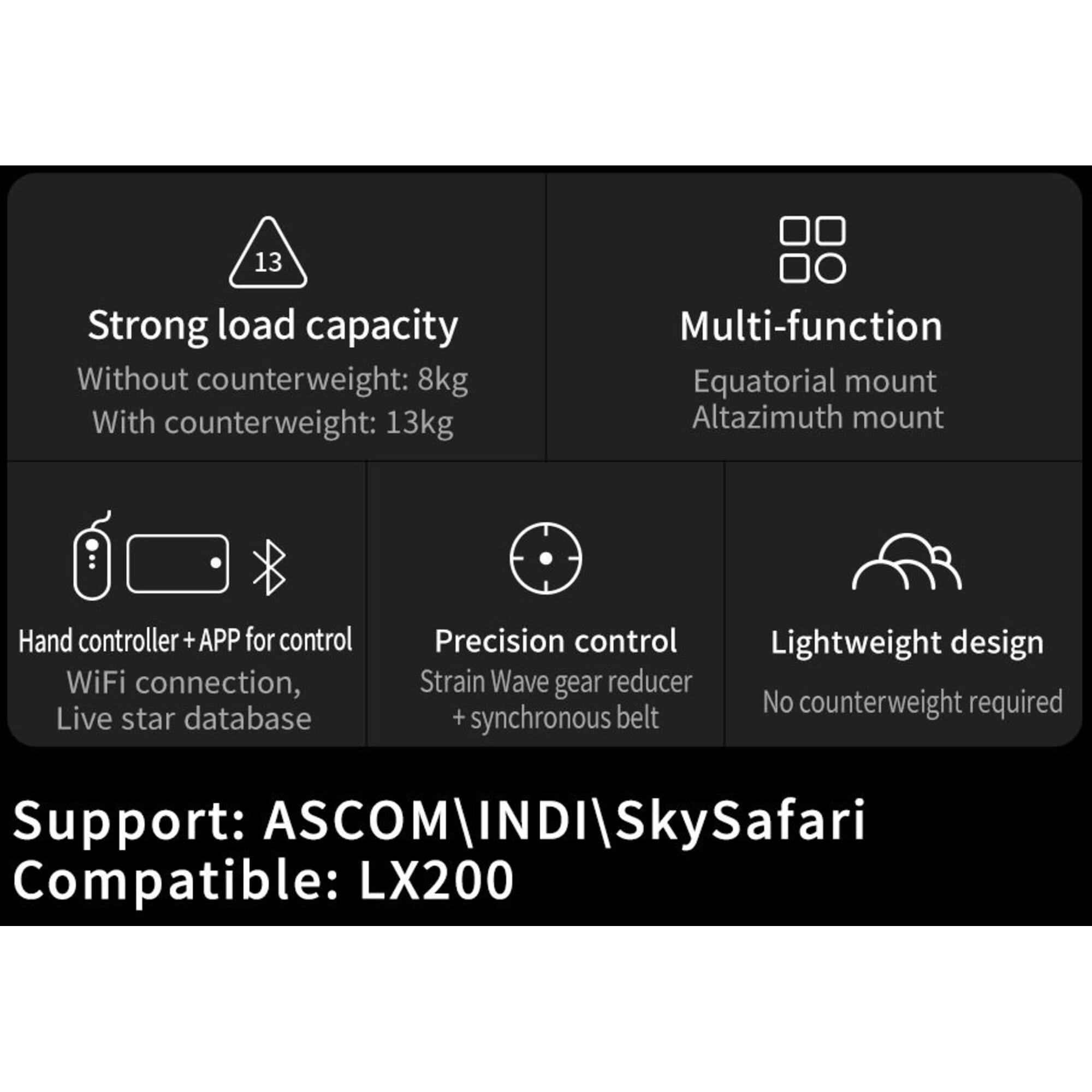 Kortom: een slimme keuze voor astrofotografen die op zoek zijn naar draagbaarheid, betrouwbaarheid en moderne besturing in één compacte montering.