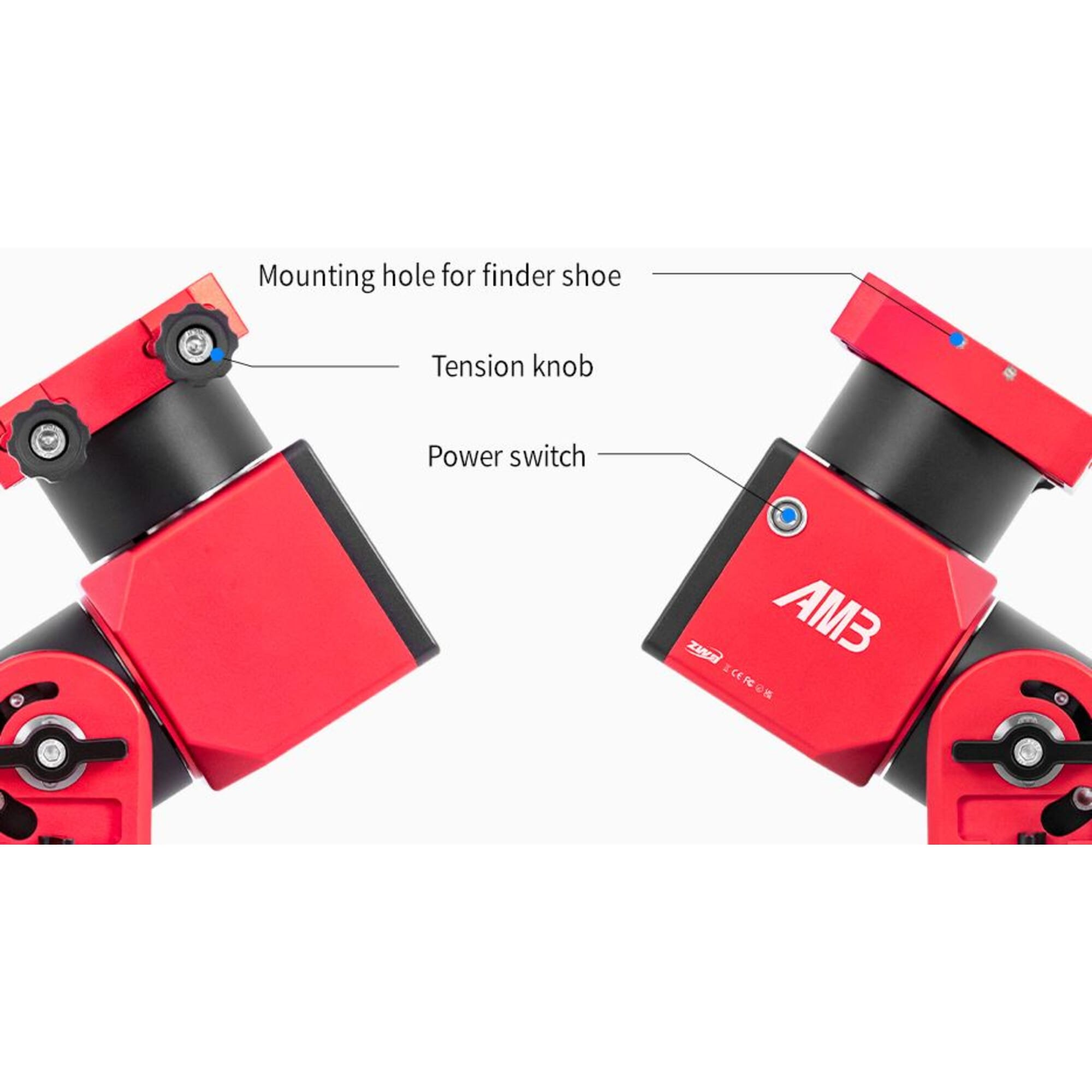 ZWO past harmonic drive-technologie toe die afkomstig is uit de robotica, wat zorgt voor extreem soepele tracking en minimale speling. De AM3 werkt zowel in equatoriale modus (voor astrofotografie) als in alt-azimuth modus (voor visuele observatie of planetair werk), met een simpele schakel tussen beide. Een statusled toont duidelijk welke modus actief is: rood voor EQ, groen voor AZ.
