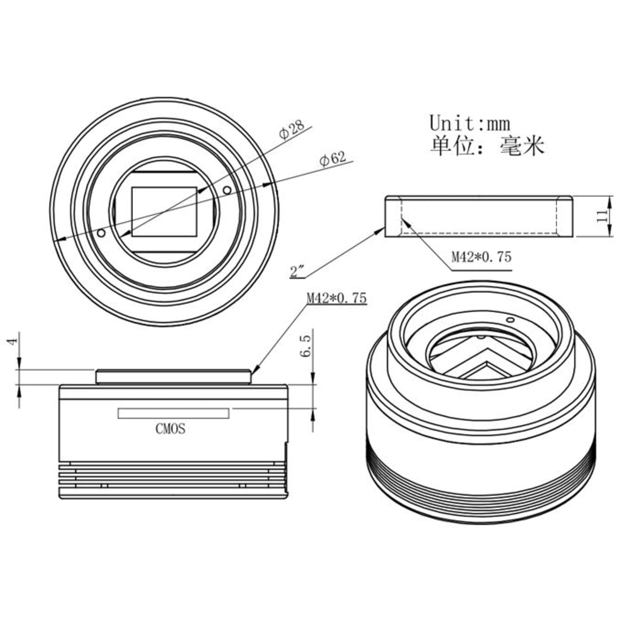 ✔ Sony IMX183 kleurensensor – 20,18 MP en 2,4 µm pixels voor hoge resolutie