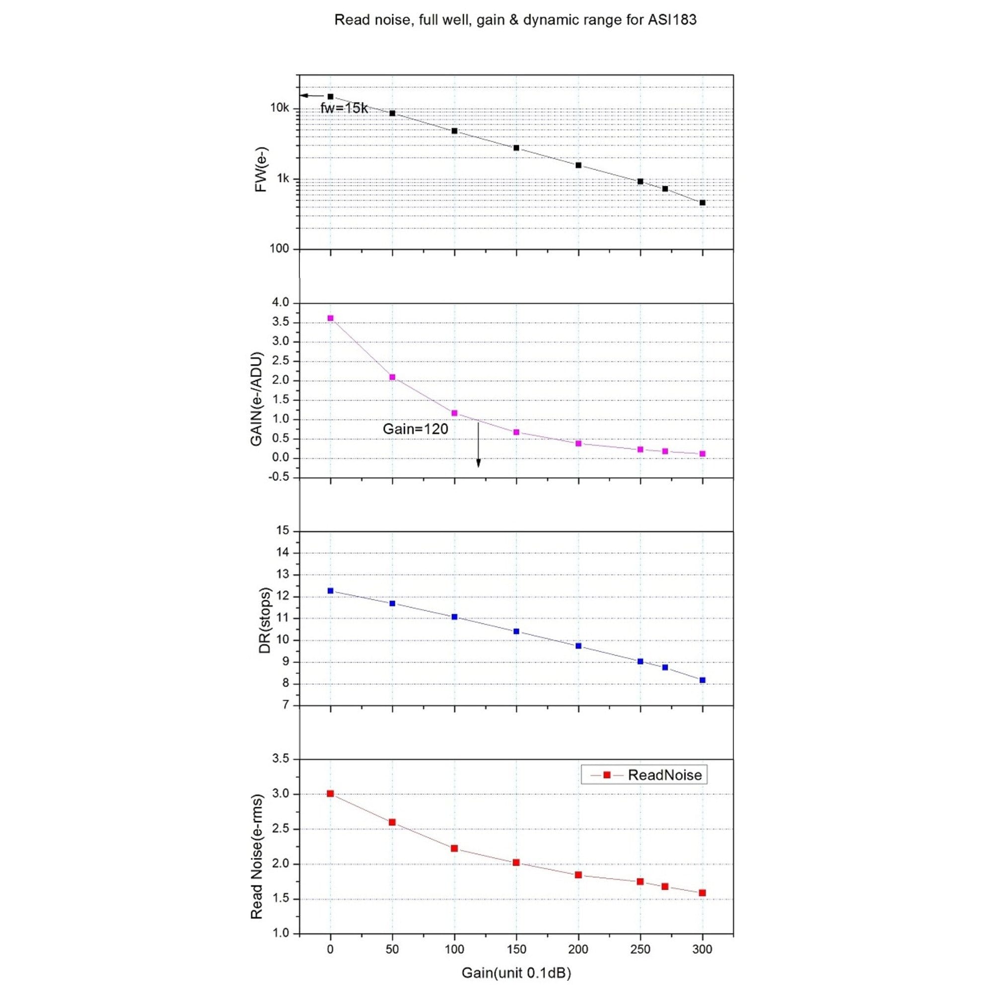 - Sensor: Sony IMX183 (kleur, CMOS, BSI)