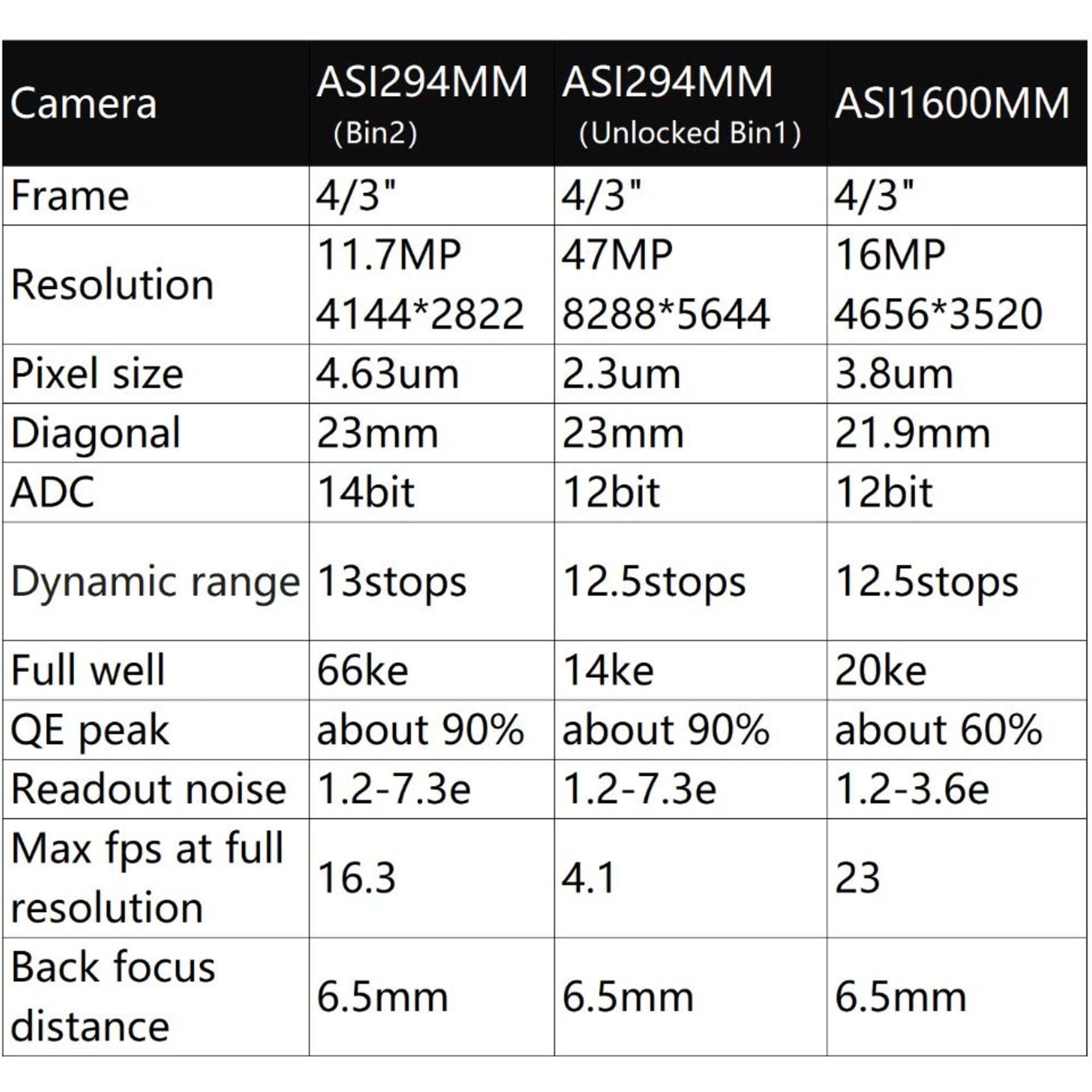 De ASI294MM Mono maakt gebruik van 4,63 µm pixels, met de mogelijkheid om via “unlocked mode” een resolutie van 2,3 µm pixels te benutten. Dat maakt deze camera niet alleen geschikt voor standaardopnamen, maar ook voor high-res lucky imaging en zonnefoto’s.