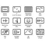 Dankzij de vierkante sensor (3008 × 3008 pixels) van 9 MP en een pixelgrootte van 3,76 µm is deze camera ideaal voor gebruik met snelle telescopen zoals apochromaten, Newtons of HyperStar-systemen. Met een QE tot 80%, actieve Peltier-koeling en 14-bit ADC biedt deze camera prestaties die eerder alleen van CCD-camera’s bekend waren – maar met een veel hogere gevoeligheid.