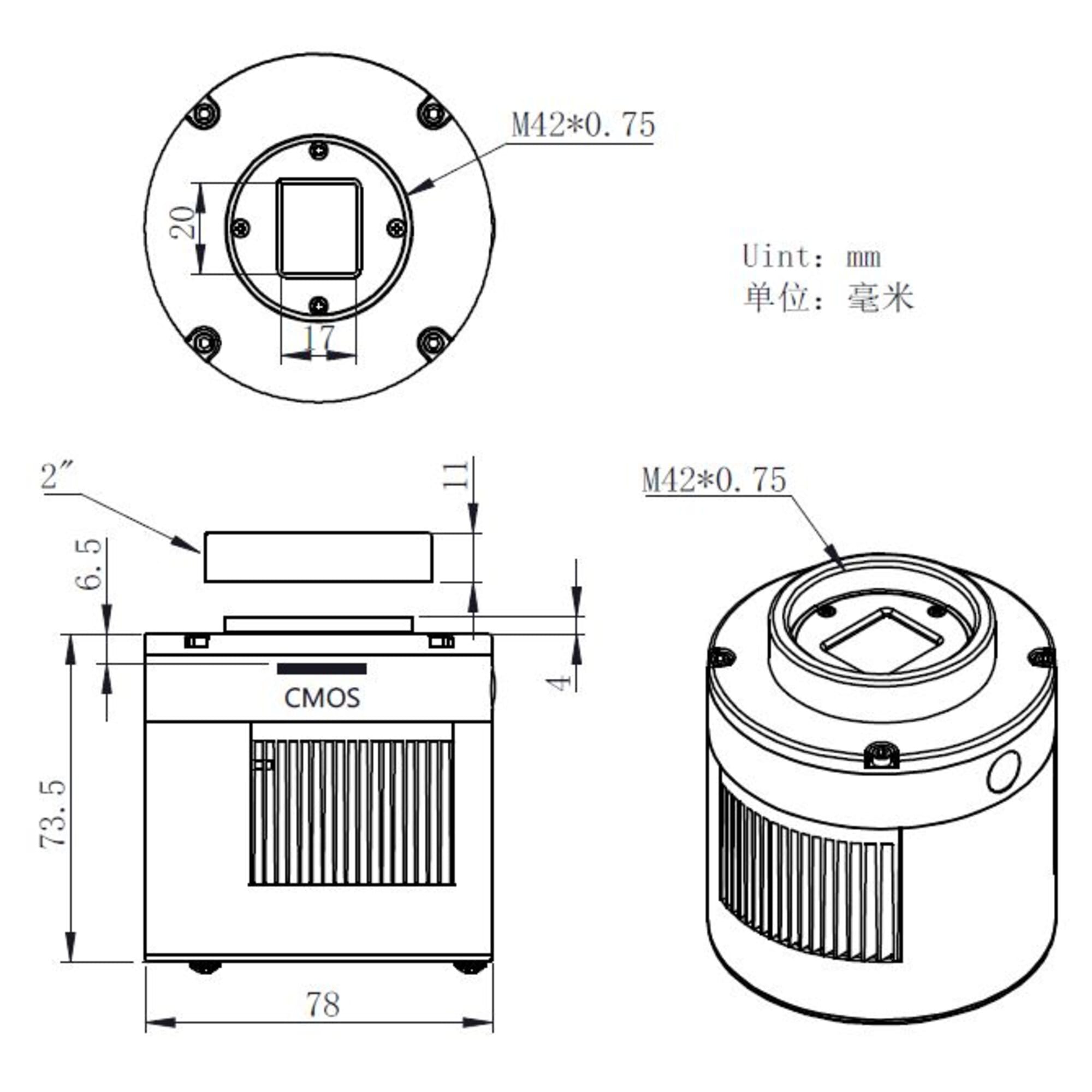 - Sony IMX533 CMOS sensor (9 MP) – vierkant formaat, 3008 × 3008 pixels