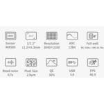 • Sony IMX585 sensor (8,3 MP, monochroom) – resolutie van 3840 x 2160 pixels