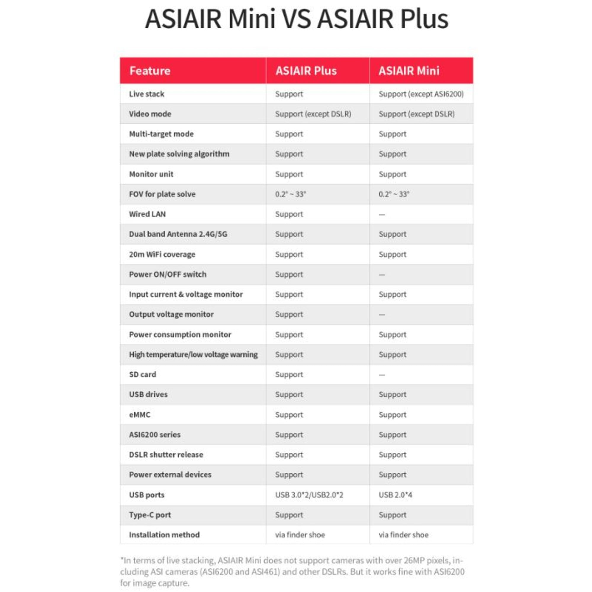 Dankzij de ASIAIR-app (Android en iOS) kun je automatisch belichtingsreeksen starten, polar alignment uitvoeren, platesolven, guiding instellen en zelfs live stacken. De Mini is compatibel met alle ZWO-producten zoals ASI-camera’s, EAF, EFW en de AM3/AM5 mounts, en ondersteunt daarnaast ook populaire merken zoals Sky-Watcher, Celestron en iOptron.
