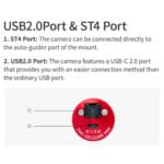 - Interfaces: USB 2.0, ST-4 guiding-poort