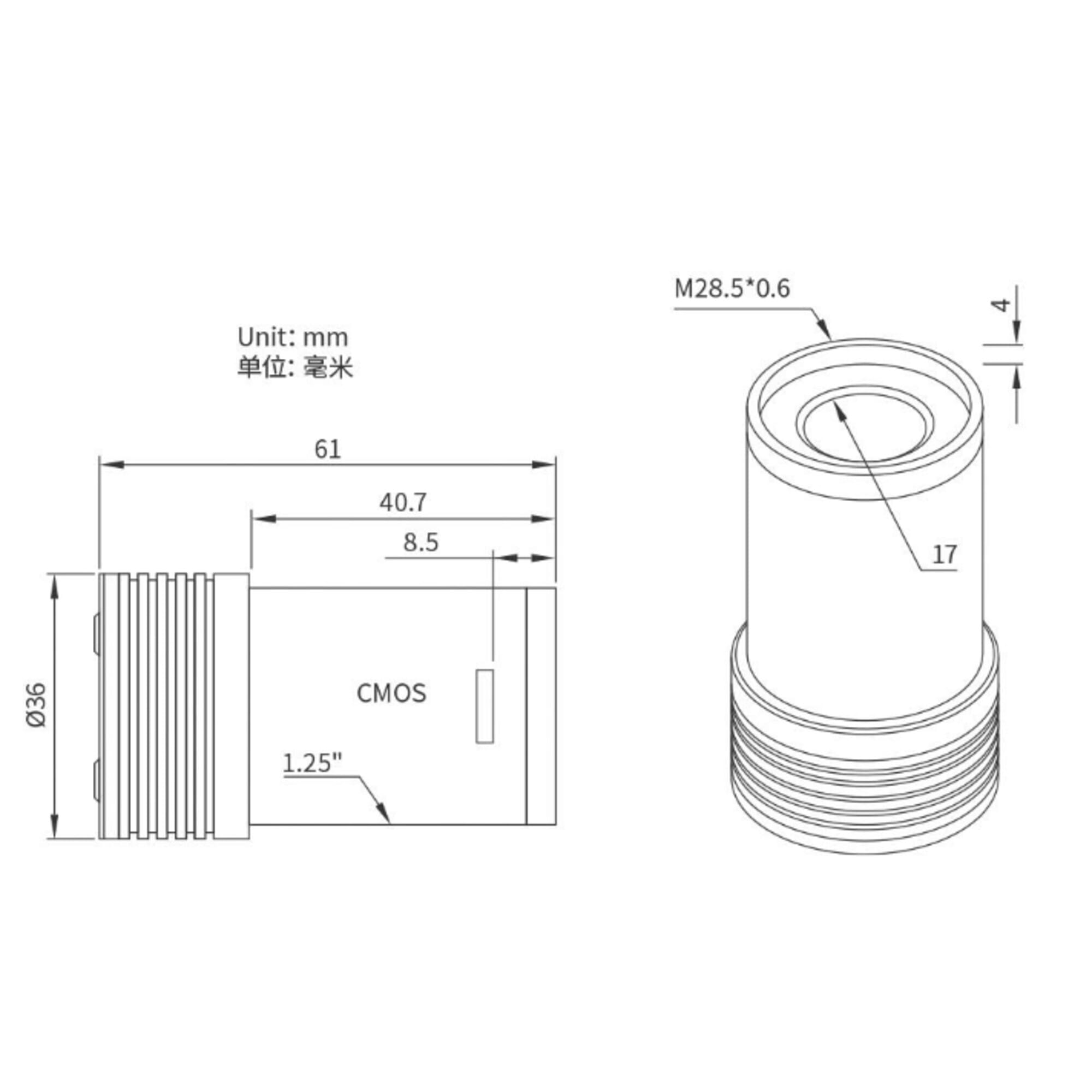 - Flange focal distance: 8,5 mm